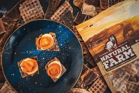 ✓ Reviewed by Natural Farm Pet Team · Updated January 2026 Doggy Crostini are elegant, bite-sized dog treats made with beef gullet sticks as the "bread," topped with a creamy...