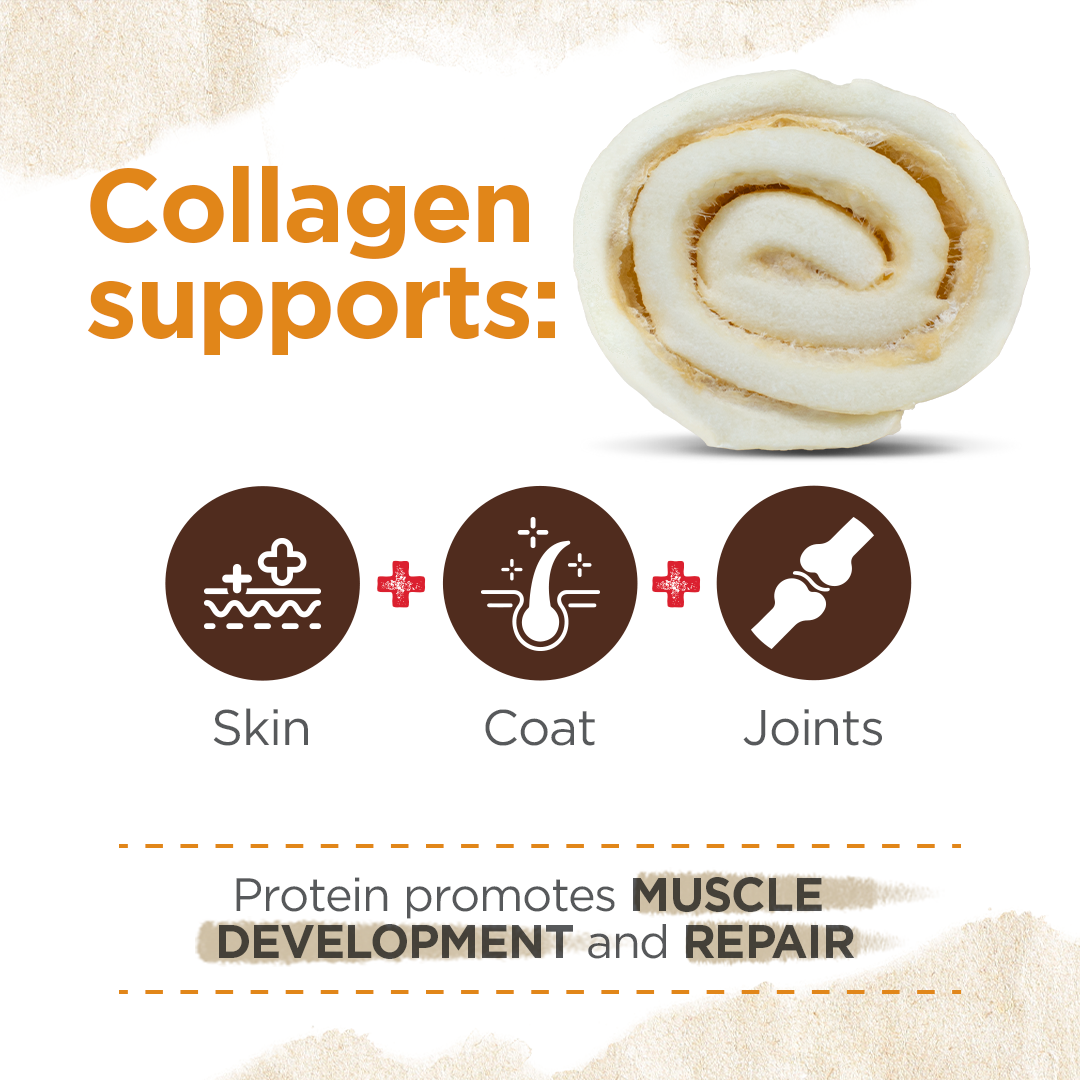 Always monitor your dog closely when introducing a new treat and provide plenty of fresh water. We recommend that you minimize chew time to 3-5 minutes at first and increase over a 5-day period. Be extra attentive to young dogs & puppies, and steer away from chews altogether for puppies under 3 months. Our treats & chews should never replace your dog’s diet and are not meant for human consumption.