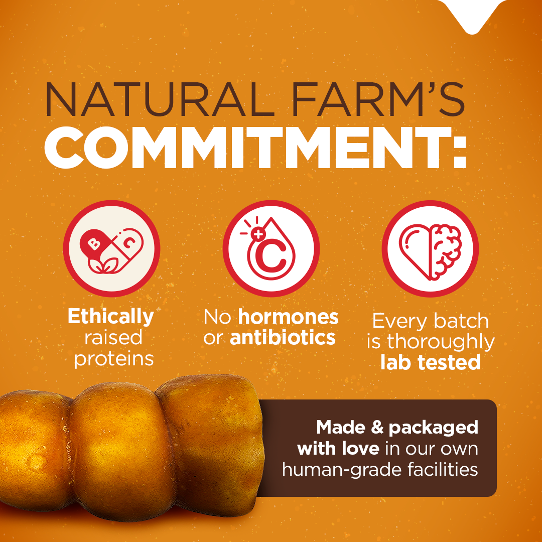 Always monitor your dog closely when introducing a new treat and provide plenty of fresh water. We recommend that you minimize chew time to 3-5 minutes at first and increase over a 5-day period. Be extra attentive to young dogs & puppies, and steer away from chews altogether for puppies under 3 months. Our treats & chews should never replace your dog’s diet and are not meant for human consumption.