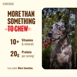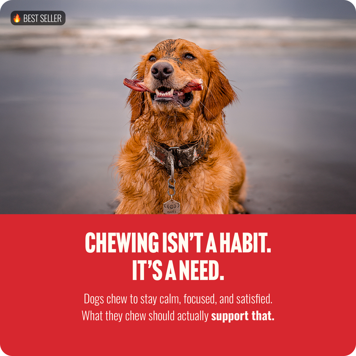 Always monitor your dog closely when introducing a new treat and provide plenty of fresh water. We recommend that you minimize chew time to 3-5 minutes at first and increase over a 5-day period. Be extra attentive to young dogs & puppies, and steer away from chews altogether for puppies under 3 months. While all our products are carefully selected for the highest quality and safety, please consider your dog’s health, age, diet, and chew capacity before introducing a new treat. Our treats & chews should never replace your dog’s diet and is not meant for human consumption.