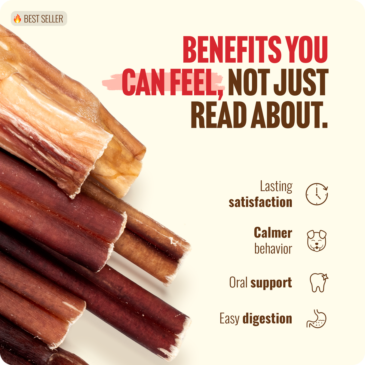 Bite-sized and beneficial: Our small 2 to 3-inch Bully Stick Bites provide the perks of full-sized bully sticks for petite breeds, puppies, or as quick treats. The best alternative to rawhide or messy and processed chewable treats. Great for joint health, these small chews are gentle on a sensitive stomach, making them ideal for dogs of all ages.