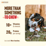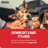 Always monitor your dog closely when introducing a new treat and provide plenty of fresh water. We recommend that you minimize chew time to 3-5 minutes at first and increase over a 5-day period. Be extra attentive to young dogs & puppies, and steer away from chews altogether for puppies under 3 months. While all our products are carefully selected for the highest quality and safety, please consider your dog’s health, age, diet, and chew capacity before introducing a new treat. Our treats & chews should never replace your dog’s diet and is not meant for human consumption.