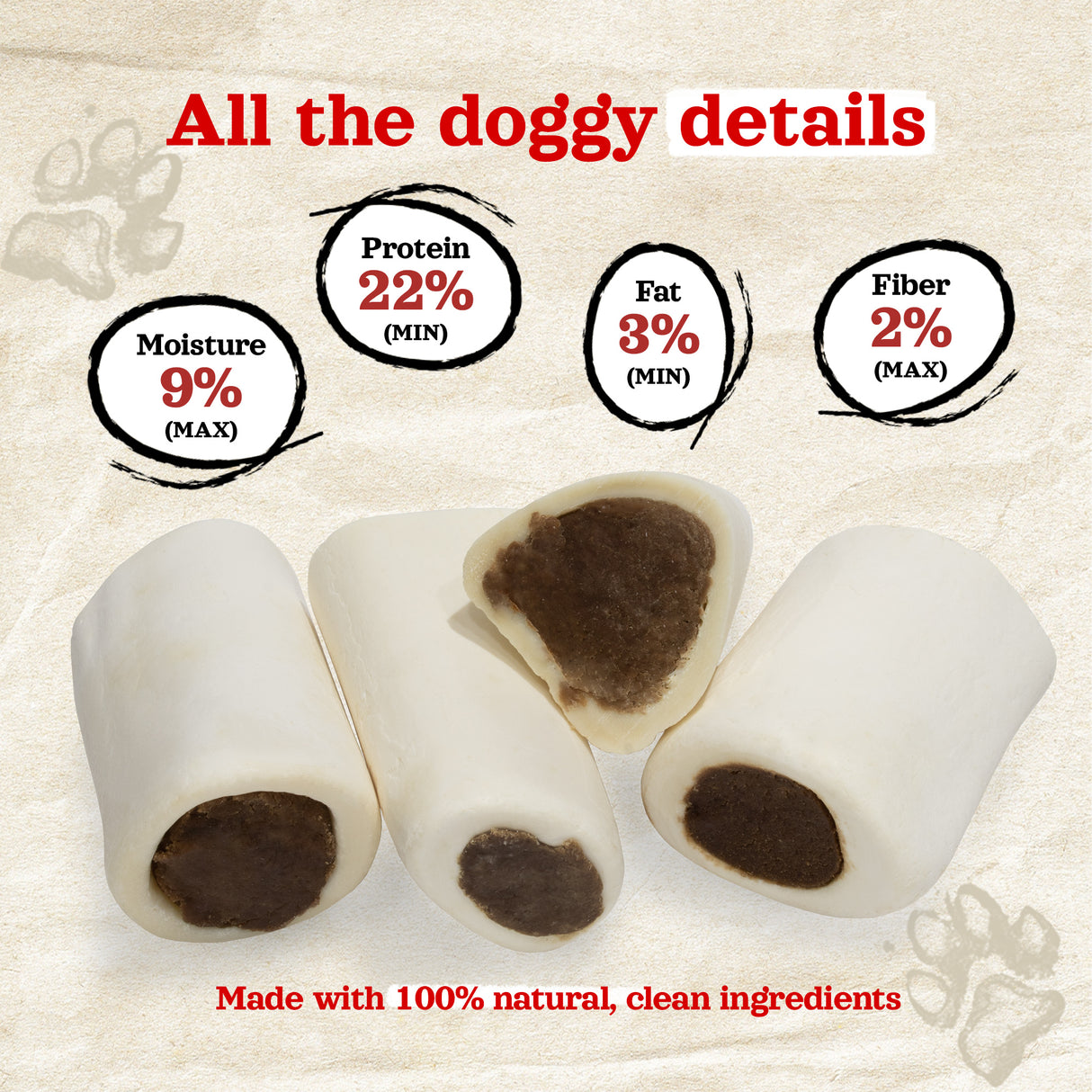- Limited ingredients: Natural beef femur bone stuffed with bacon & cheese filling