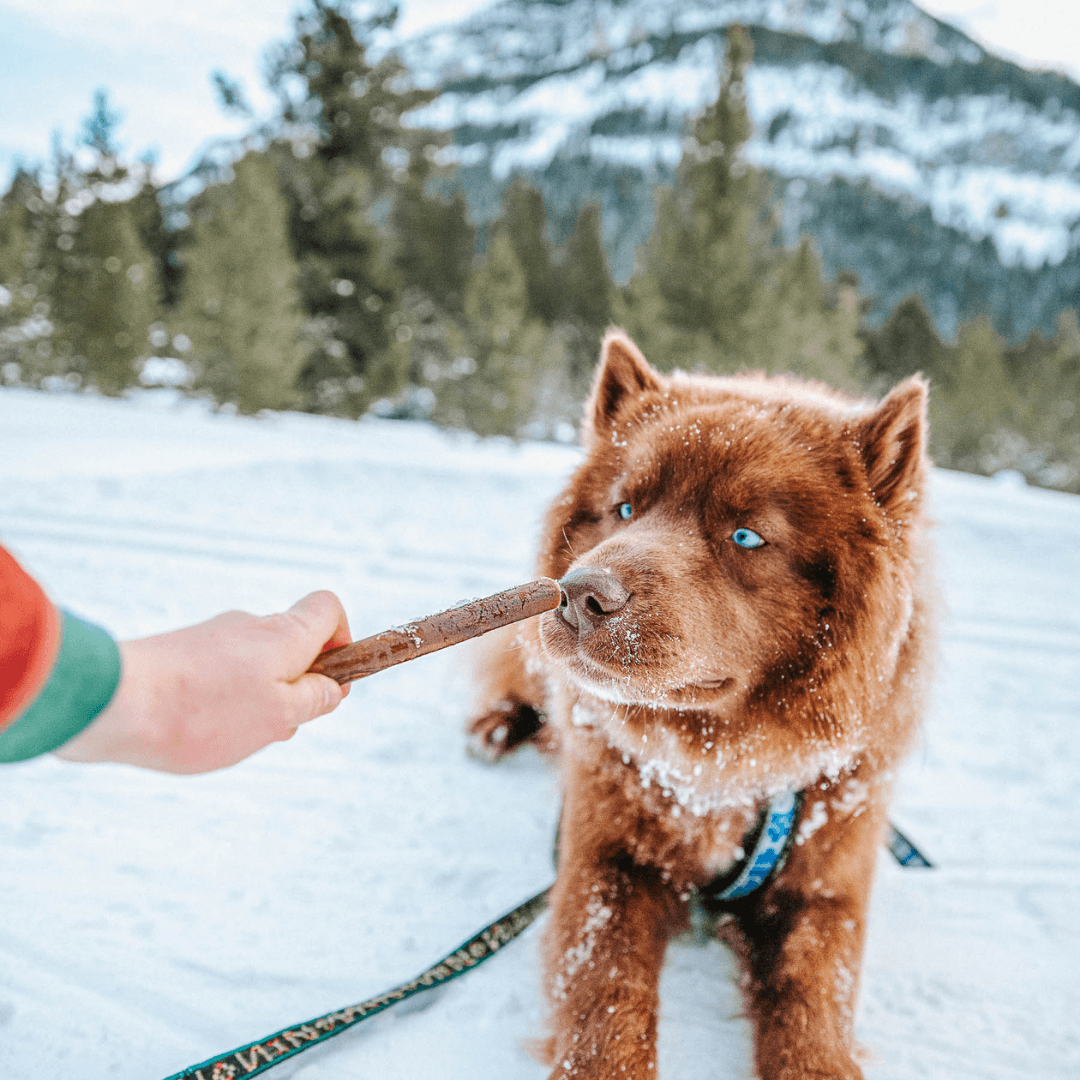 Always monitor your dog closely when introducing a new treat and provide plenty of fresh water. We recommend that you minimize chew time to 3-5 minutes at first and increase over a 5-day period. Be extra attentive to young dogs & puppies, and steer away from chews altogether for puppies under 3 months. While all our products are carefully selected for the highest quality and safety, please consider your dog’s health, age, diet, and chew capacity before introducing a new treat. Our treats & chews should never replace your dog’s diet and is not meant for human consumption.