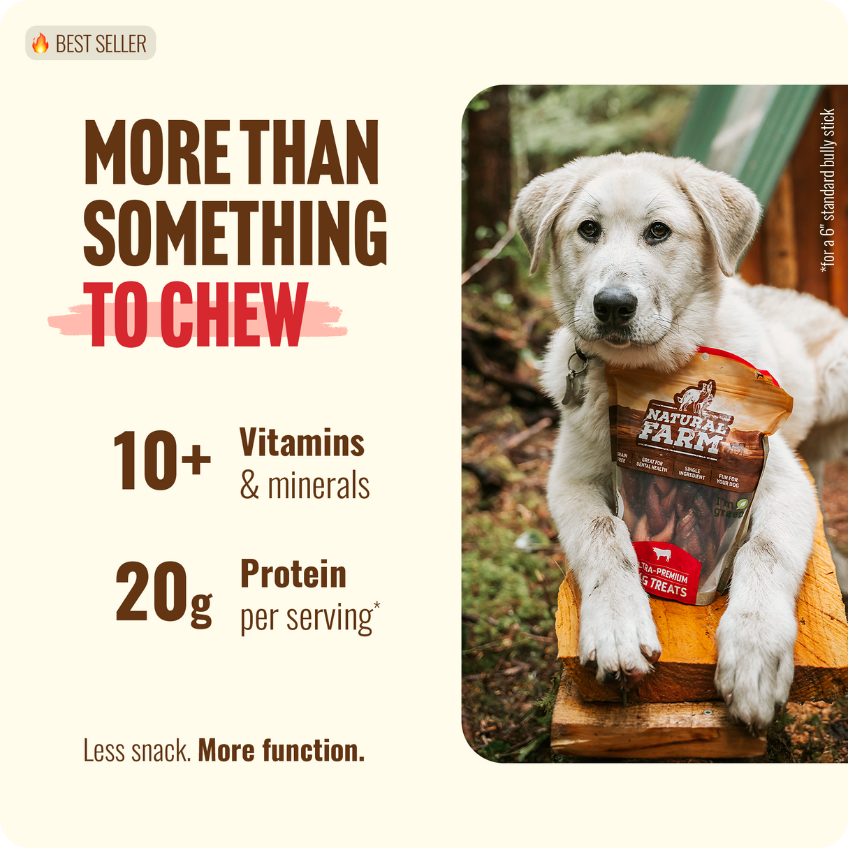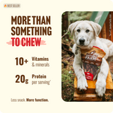 Always monitor your dog closely when introducing a new treat and provide plenty of fresh water. We recommend that you minimize chew time to 3-5 minutes at first and increase over a 5-day period. Be extra attentive to young dogs & puppies, and steer away from chews altogether for puppies under 3 months. While all our products are carefully selected for the highest quality and safety, please consider your dog’s health, age, diet, and chew capacity before introducing a new treat. Our treats & chews should never replace your dog’s diet and is not meant for human consumption.