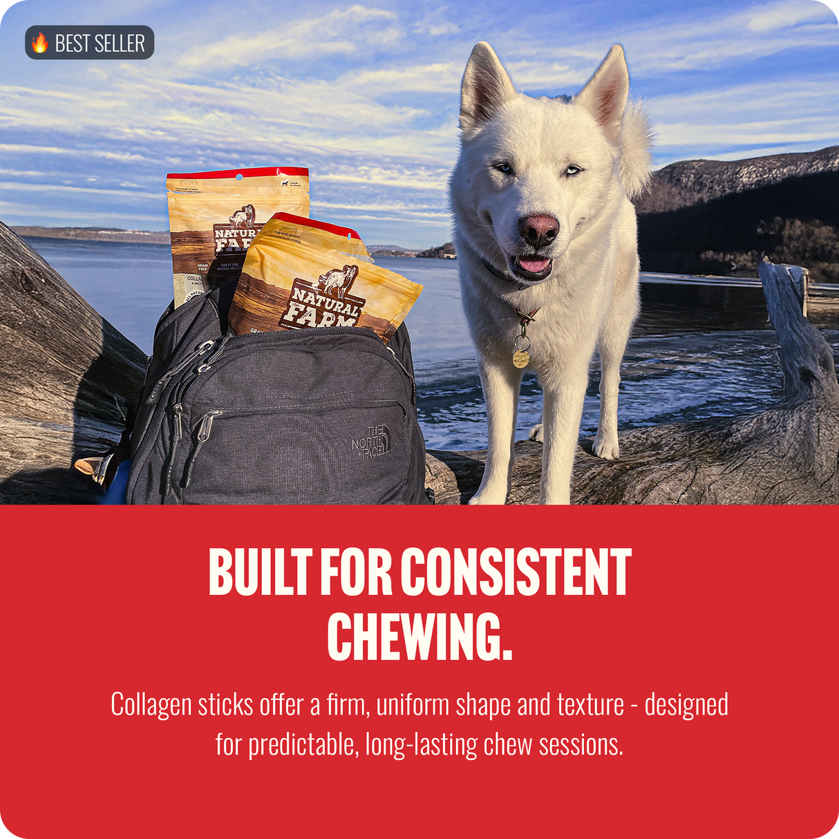 Bring layers of entertainment to any chewing session with Natural Farm’s Braided Collagen Sticks! With 95% collagen, they'll offer your dog nutritious benefits like well-rounded skin, coat, and joint health. These long-lasting chews provide added entertainment and mental stimulation with its braided texture. Best for medium-to-heavy chewers.