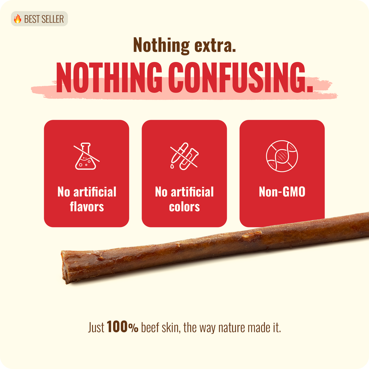 Ingredients: Natural beef skin (stick); natural beef, and water (coating)