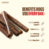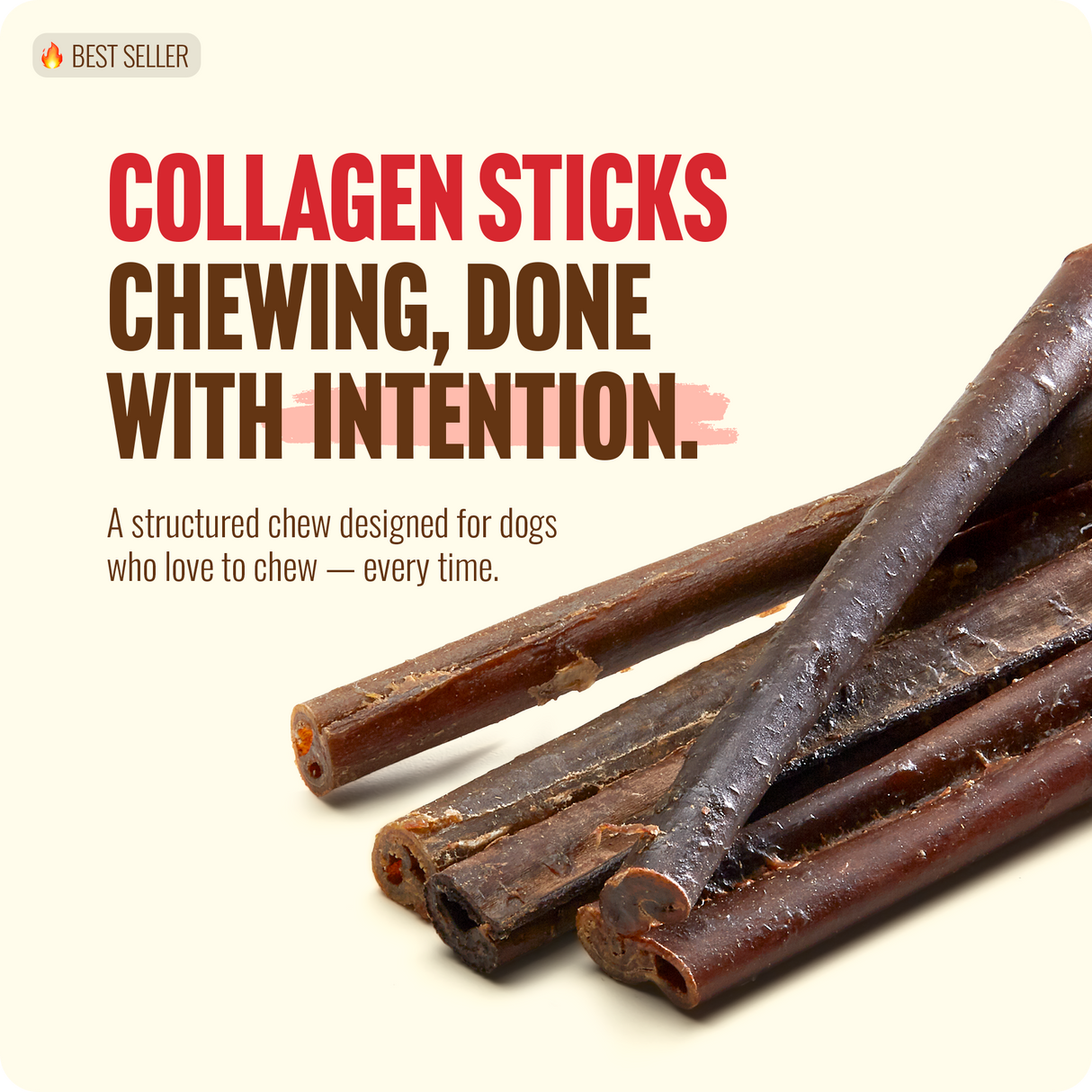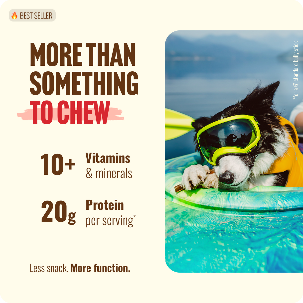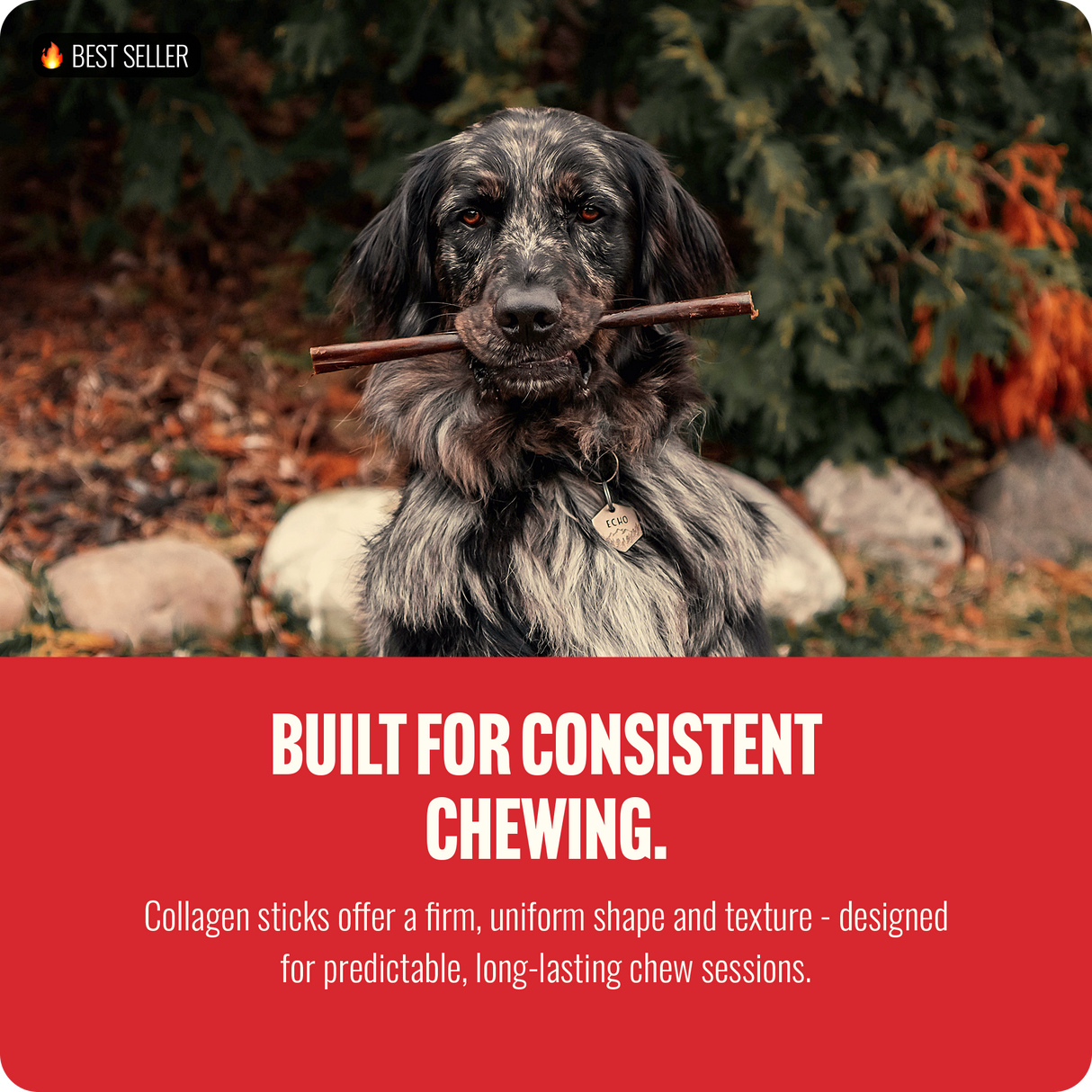 Bold flavor & beefed up benefits: Each 6-Inch Bully Coated Gourmet Collagen Stick is naturally savory and rich in collagen, protein, and amino acids. Collagen sticks provide your pup with scrumptious, long-lasting entertainment and are best for medium and heavy chewers. Collagen supports a bright mind and shiny coat while nurturing joints for enhanced mobility and flexibility. Long-lasting chews enrich the mind and release joy-inducing endorphins, making for some very happy dogs! Bully Coated Gourmet Collagen Sticks also promote healthy gums and teeth as they scrape away tartar and plaque while your pup chews them. Made from free-range, all-natural beef without any chemicals, additives, hormones, or antibiotics.