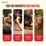 Always monitor your dog closely when introducing a new treat and provide plenty of fresh water. We recommend that you minimize chew time to 3-5 minutes at first and increase over a 5-day period. Be extra attentive to young dogs & puppies, and steer away from chews altogether for puppies under 3 months. While all our products are carefully selected for the highest quality and safety, please consider your dog’s health, age, diet, and chew capacity before introducing a new treat. Our treats & chews should never replace your dog’s diet and is not meant for human consumption.