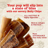 Bully Chips are made from 100% natural beef cheek from free-range, grass-fed cattle and feature an engaging dual texture and flattened design. Packed with high-quality protein and collagen, these highly digestible chews promote healthier skin, coats, joints, muscles, and dental health. Full of rich, savory beef flavor and completely free of chemicals, hormones, and antibiotics. Great for medium chewers.