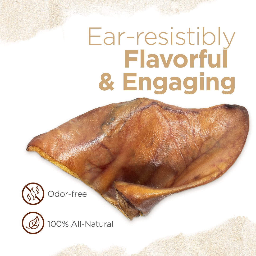 Crunchy pleasure: Our pig ear treats provide hours of crispy and tasty fun for your dog. Irresistible pork flavor. A natural way to treat your dog for long-lasting enjoyment and mental engagement. A meaty source of protein and dental health without preservatives, additives, or hormones.