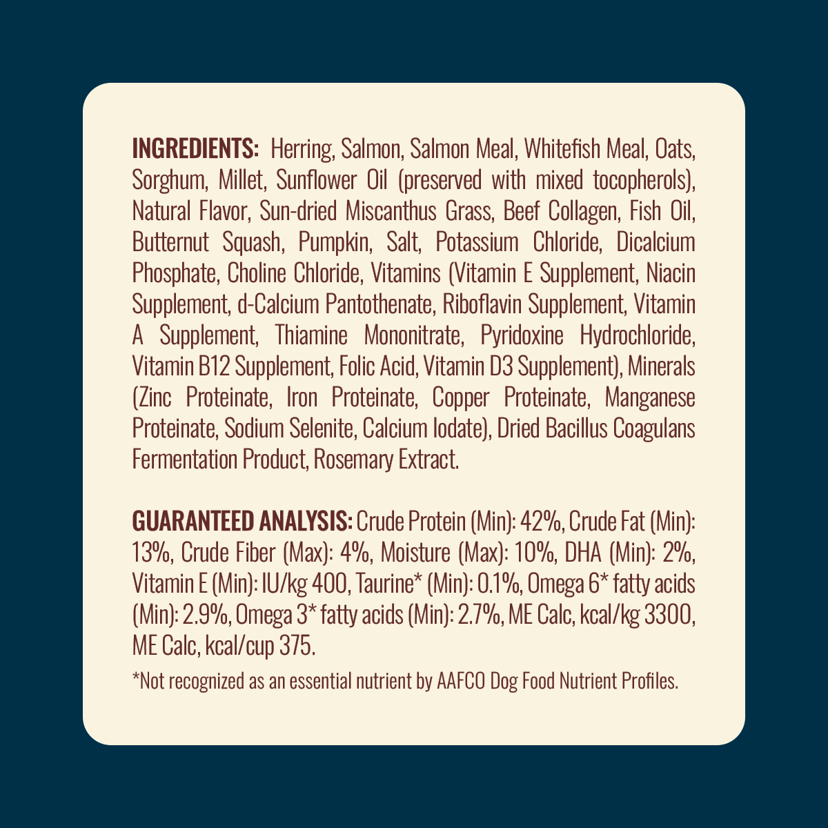 *Not recognized as an essential nutrient by AAFCO Dog Food Nutrient Profiles.