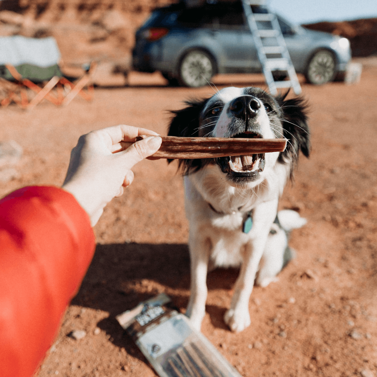 Always monitor your dog closely when introducing a new treat and provide plenty of fresh water. We recommend that you minimize chew time to 3-5 minutes at first and increase over a 5-day period. Be extra attentive to young dogs & puppies, and steer away from chews altogether for puppies under 3 months. While all our products are carefully selected for the highest quality and safety, please consider your dog’s health, age, diet, and chew capacity before introducing a new treat. Our treats & chews should never replace your dog’s diet and are not meant for human consumption.