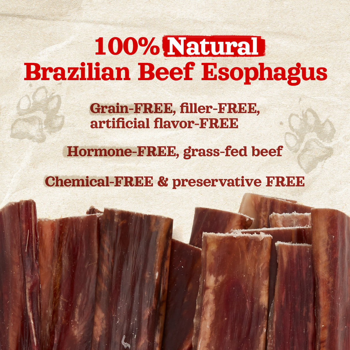 Chewy and tasty: Beef Jerky Treats provide pups with a resistant chew that softens to a fully-digestible flavorful treat. Beef Jerky strips are made from human-grade beef esophagus. Packed with glucosamine and chondroitin to reduce inflammation and improve joint mobility and free of preservatives, additives, and hormones.