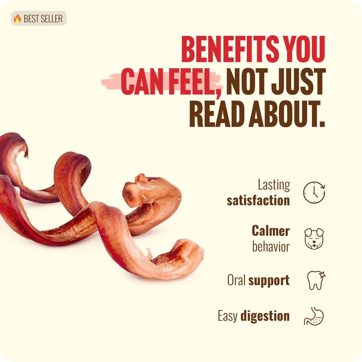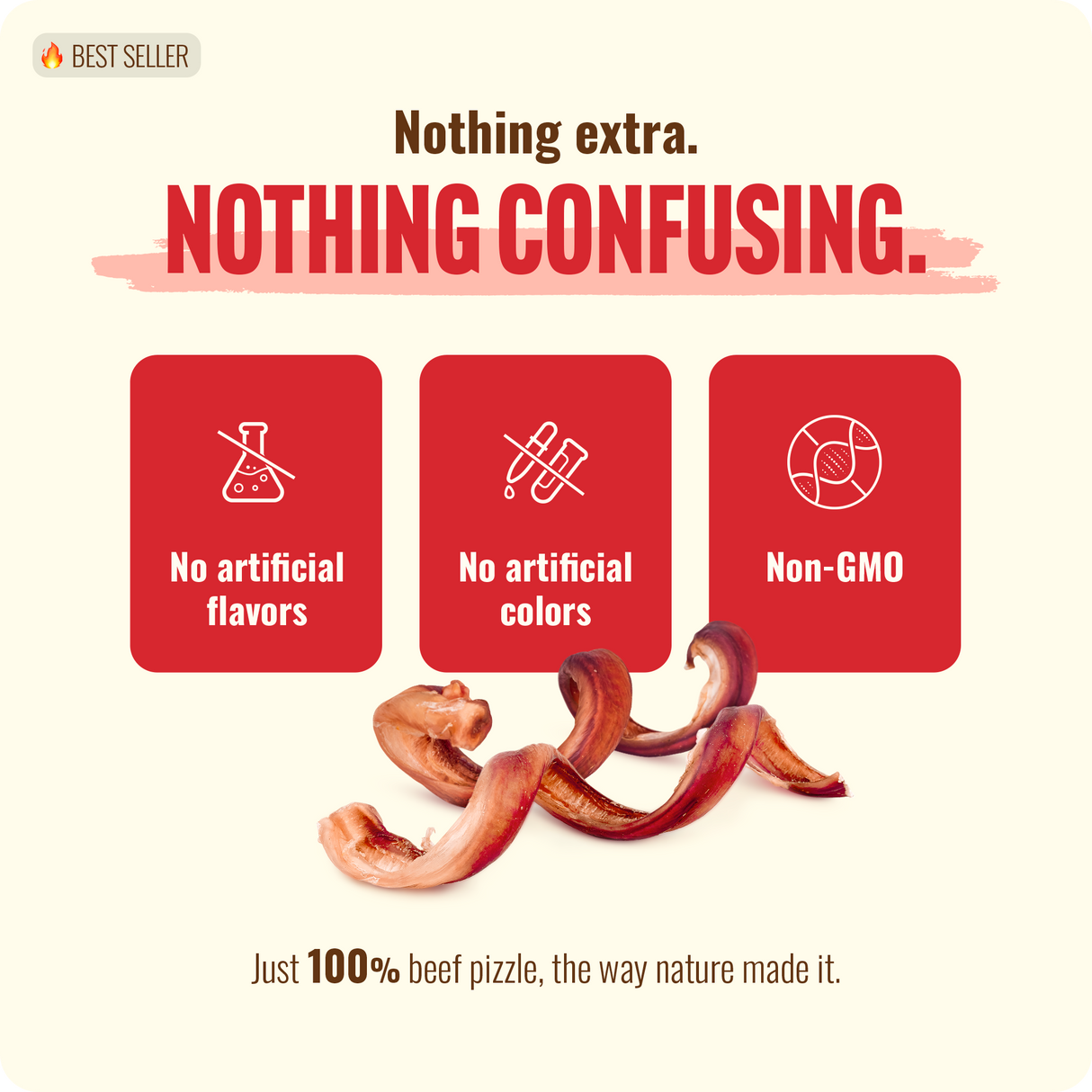 A great way to keep your dog busy and promote positive behavior. Our spiral shaped 6 Inch Bully Springs provide dogs with real protein and real fun. The unique curly cue shape eliminates boredom, promotes mental engagement, and cleans teeth. Free from synthetic flavors, preservatives, or hormones.