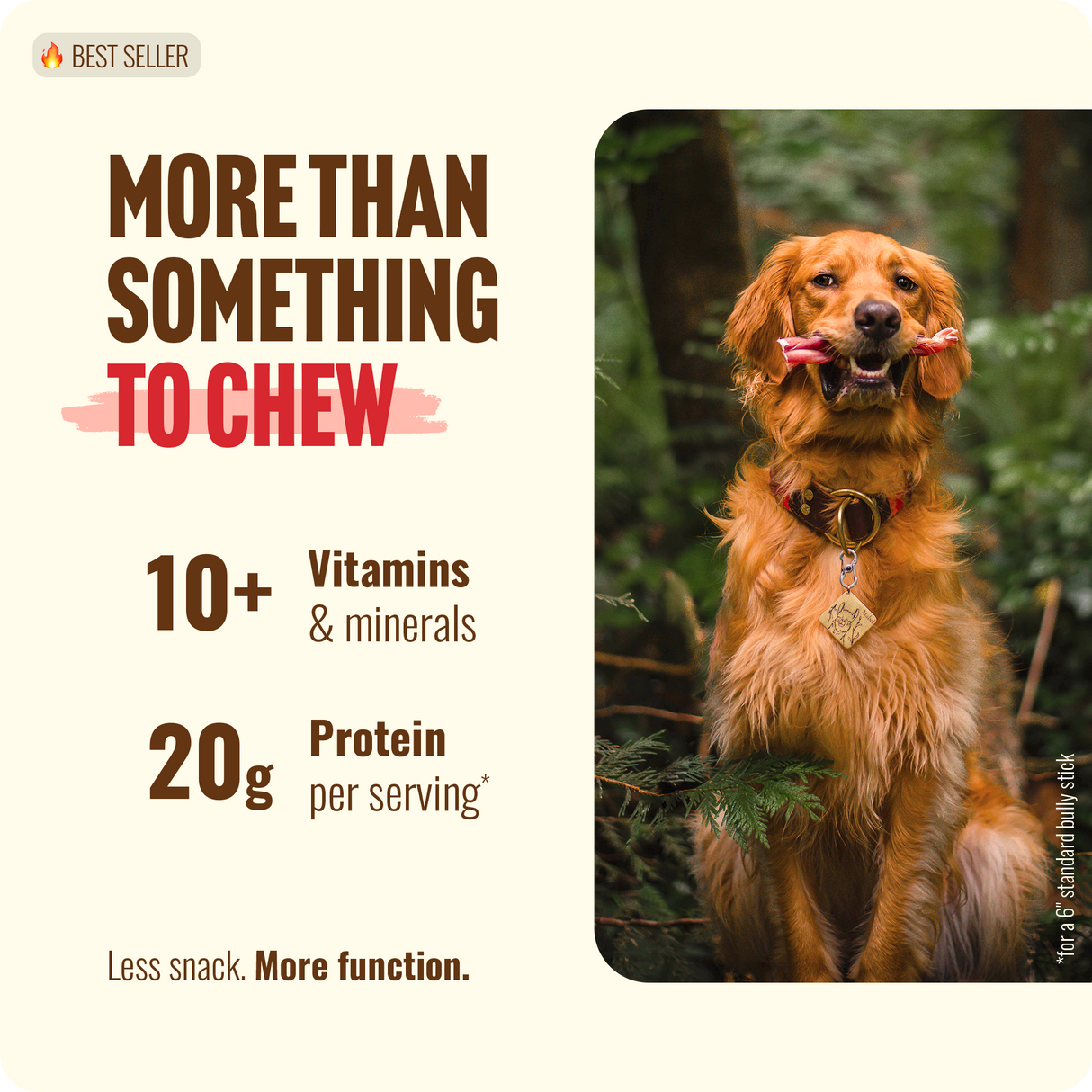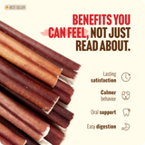 Meaty and long-lasting: Our 7 Inch Bully Sticks keep dogs mentally stimulated while treating them to a boost in high-quality protein. A positive outlet for your dog’s chewing instinct (a way to relieve stress and excess energy). Bully sticks are fully digestible and remove plaque as your dog chews. They are also a rich source of amino acids for better brain health, stronger muscles, and joint support. Great for a shiny coat, too. Best for medium chewers. Natural Farm Bully Sticks never contain preservatives or additives, and they’re made from 100% grass-fed beef.