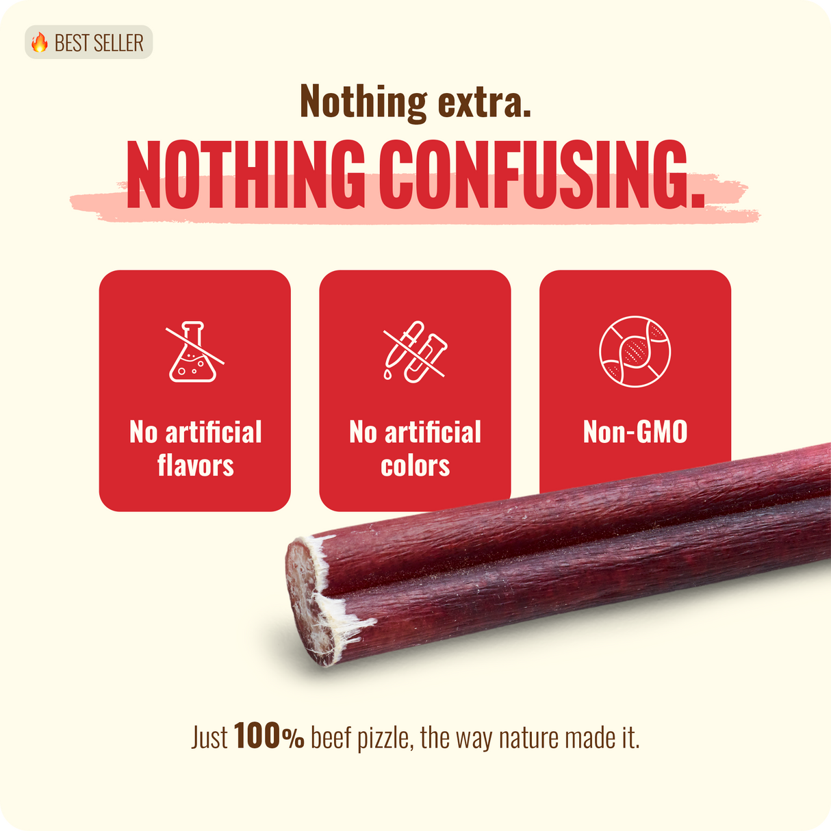 - Single-ingredient: Natural beef pizzle