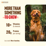 Always monitor your dog closely when introducing a new treat and provide plenty of fresh water. We recommend that you minimize chew time to 3-5 minutes at first and increase over a 5-day period. Be extra attentive to young dogs & puppies, and steer away from chews altogether for puppies under 3 months. While all our products are carefully selected for the highest quality and safety, please consider your dog’s health, age, diet, and chew capacity before introducing a new treat. Our treats & chews should never replace your dog’s diet and is not meant for human consumption.