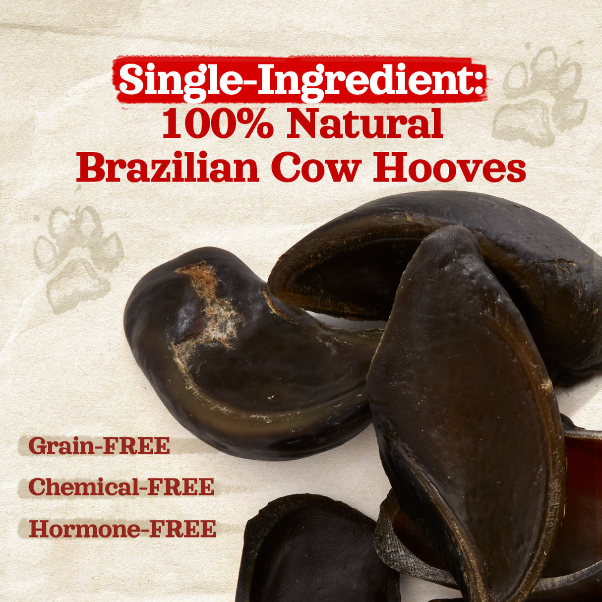 Please monitor your dog while chewing on any bone or bone-like product such as cow hooves due to the risk of splintering. Broken shards can be hazardous to dogs if swallowed. Remove and discard the hooves if they show signs of cracking or splintering. This product is not intended for consumption and should only be given to dogs over 12 months old.