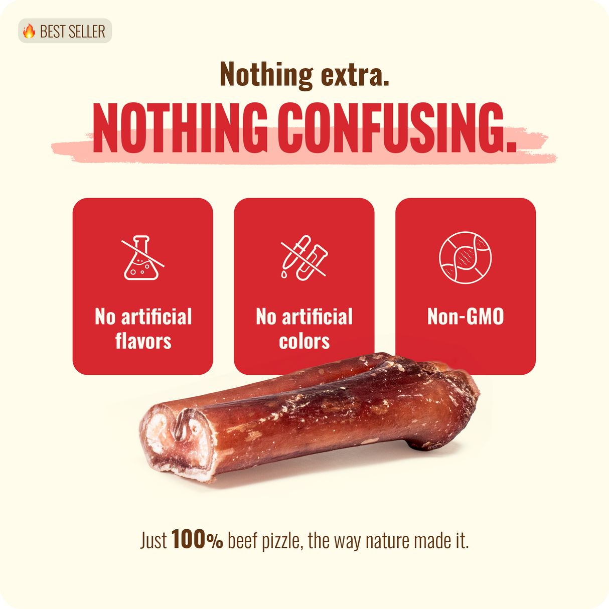 - Single-ingredient: Natural beef pizzle