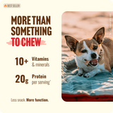 Always monitor your dog closely when introducing a new treat and provide plenty of fresh water. We recommend that you minimize chew time to 3-5 minutes at first and increase over a 5-day period. Be extra attentive to young dogs & puppies, and steer away from chews altogether for puppies under 3 months. Our treats & chews should never replace your dog’s diet and are not meant for human consumption.