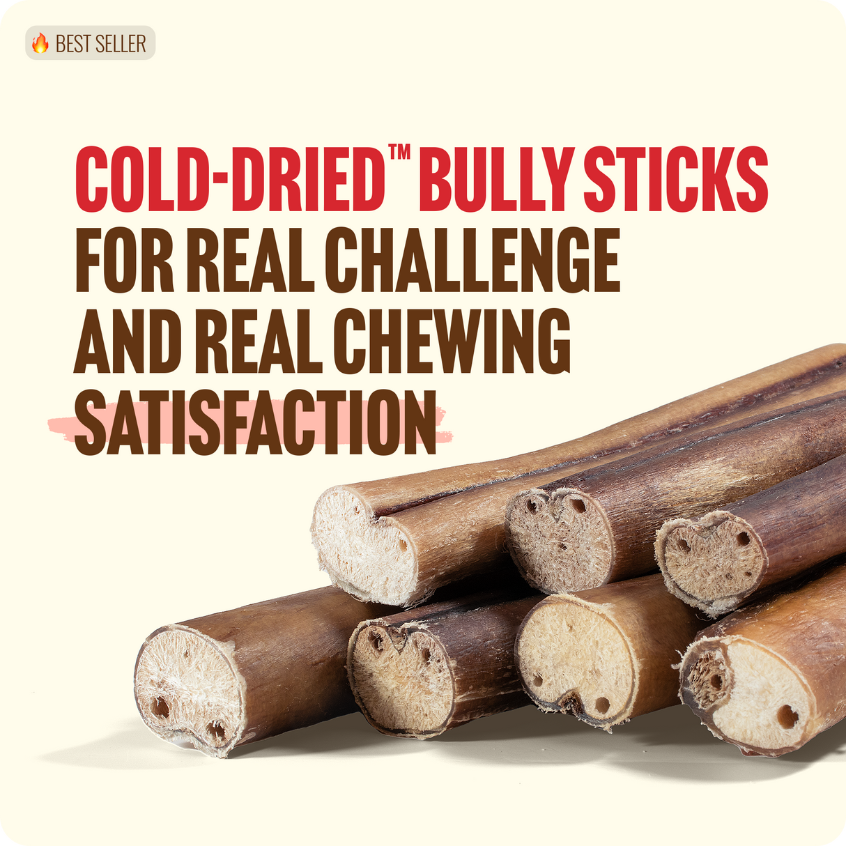 Natural Farm Cold-Dried™ Bully Sticks are the first and only bully sticks made with our proprietary low-temperature drying technology. No other brand has it. No other product matches it.