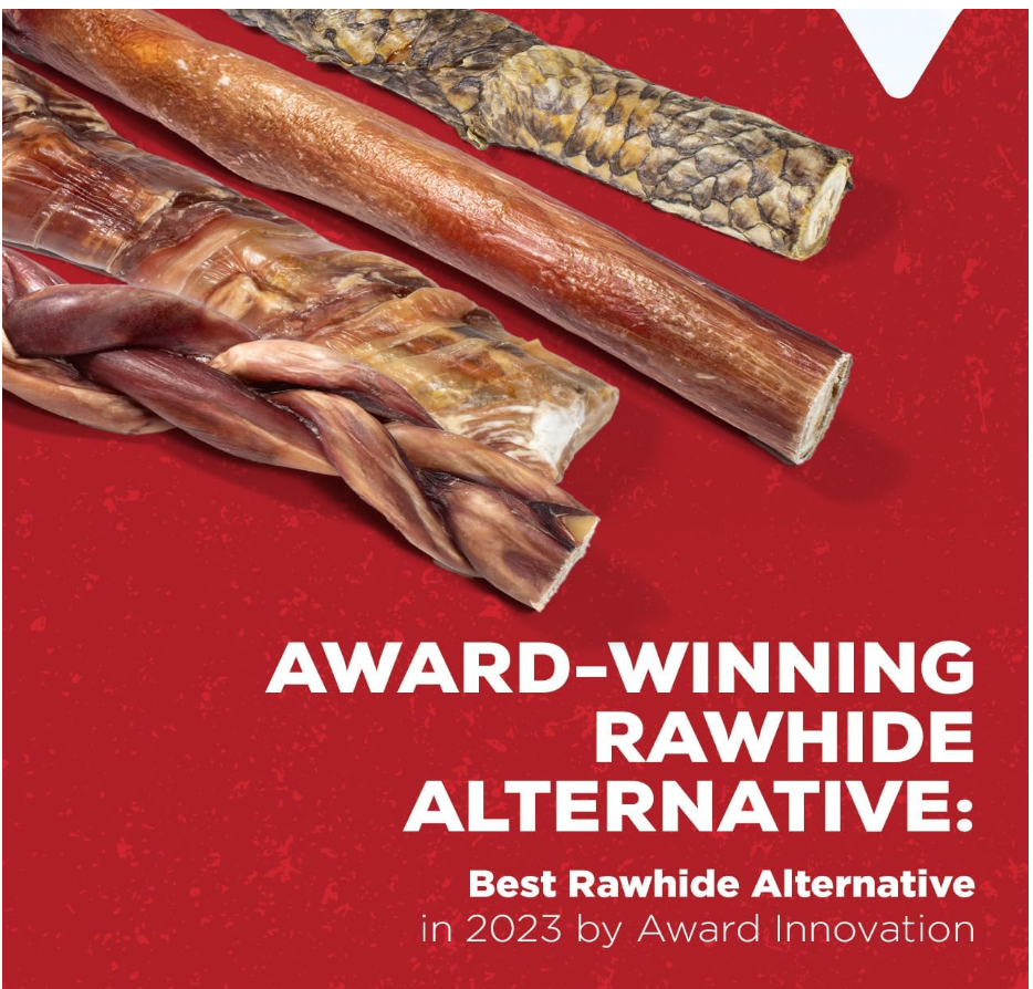 AWARD-WINNING RAWHIDE ALTERNATIVE: Won the Best Rawhide Alternative in 2023 by Award Innovation. These 2-in-1 chews offer double the flavor, fun, and enrichment. Made from premium, all-natural beef cheek muscle and beef pizzle sheath, dogs won’t get enough of these long-lasting, engaging, and protein-rich treats!