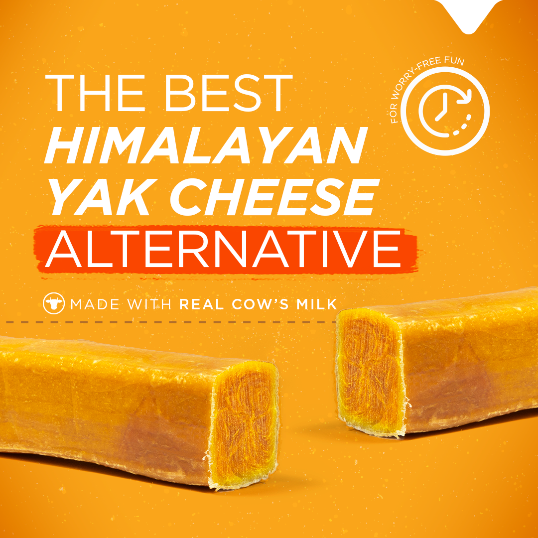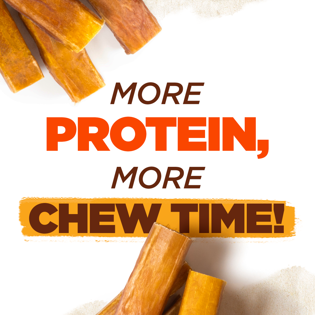 Say hello to Power Cheese, the best yak cheese alternative yet! Crafted from pure cow’s milk, this hard cheese is slow-dried to perfection and then wrapped in decadent 100% beef pizzle for the ultimate 2-in-1 dog chew. Beef and cheese is the ultimate flavor combination and is sure to keep tails wagging. Power Cheese contains high-quality calcium and protein, keeping your pup active and playful! Chewing helps to naturally scrape away tartar & plaque buildup, leaving your furry friend with a healthy, shiny smile and fresh breath.