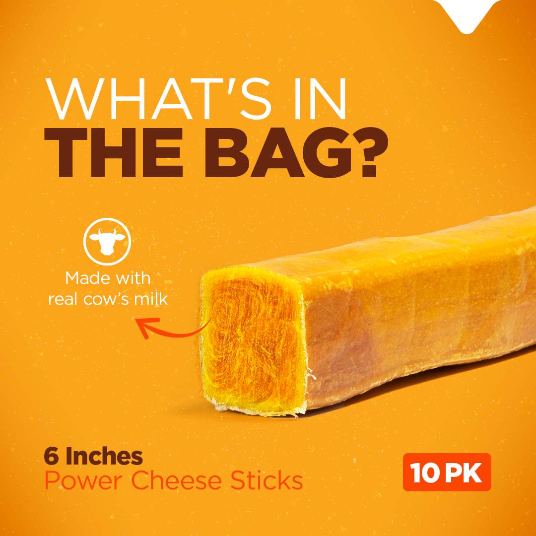 Double the Flavor! Power Cheese is a 2-in-1 treat, containing a hard cow’s milk cheese wrapped in delicious 100% beef pizzle. Your pup deserves only the best. That's why we make all of our dog treats at our own food-grade facility. There are never any surprises, as we control every part of the process from sustainable sourcing to eco-conscious packaging. As far as ingredients? If you can’t find it on a farm, you won’t find it in our products. It’s as simple as that!
